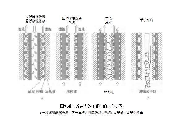 該新型壓濾機的結構類似于有隔膜壓榨板的標準壓濾機工作步驟也類似.