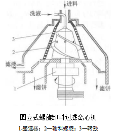 螺旋卸料過濾離心機的主體結構與螺旋卸料沉降離心機基本相同不同之處是轉鼓稍短一些轉鼓壁開有小孔內襯篩網結構形式分立式和臥式兩種.