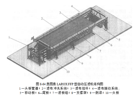 目前的LAROX PF型自動壓濾機是一種立式,壓榨型濾布全行走式全自動壓濾機,該機為單面過濾.