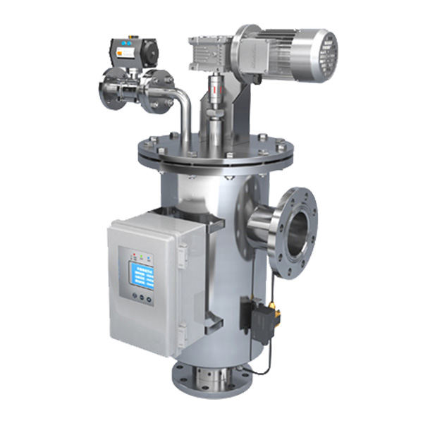 全自動自清洗過濾器(Automatic self-cleaning filter)是一種利用濾網直接攔截水中的雜質,去除水體懸浮物、顆粒物,降低濁度,凈化水質,減少系統污垢、菌藻、銹蝕等產生,以凈化水質及保護系統其他設備正常工作的精密設備。水由進水口進入自清洗過濾器機體,由于智能化(PLC、PAC)設計,系統可自動識別雜質沉積程度,給排污閥信號自動排污。